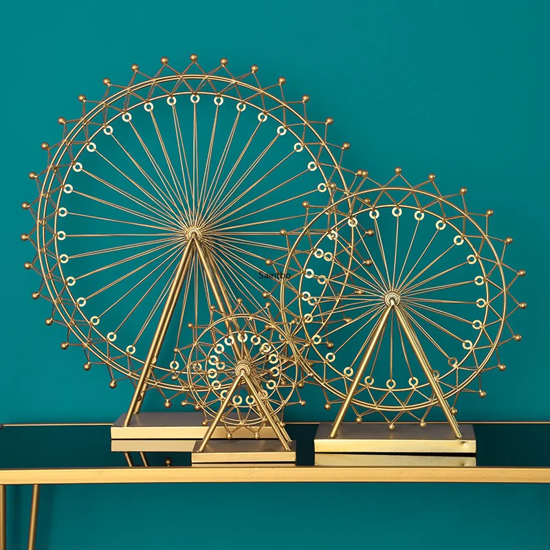 BEST QUALITY Northern Europe simple iron table decoration gold Ferris wheel handicraft home living room model ro